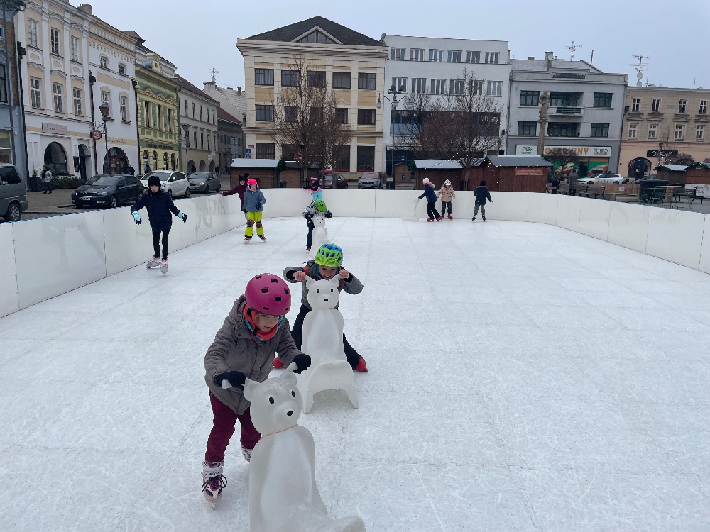 Ve čtvrtek jsme si s družinkou udělali opět malý výlet do Hranic. Tentokrát jsme si přijeli na náměstí zabruslit. Škoda jen, že kluziště není větší:-)