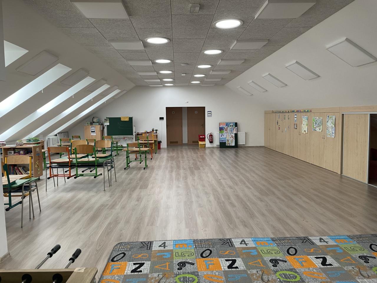 Od 17. května se mimořádná opatření zmírnila natolik, že již všichni žáci školy mohou využívat krásné nové prostory školní družiny v prvním patře přístavby - bývalých prostorách školní půdy.